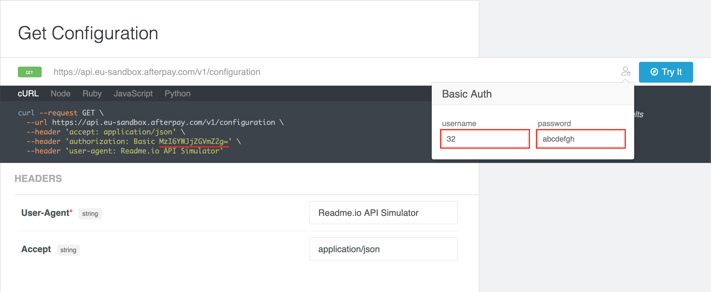 For example, the following screenshot demonstrates that the Simulator is capable of correctly constructing an Authorization header, using the Merchant ID and Secret Key.