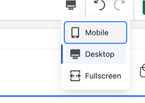 - To check the appearance on a mobile device, click the monitor icon and then click Mobile at the top right of the editor.