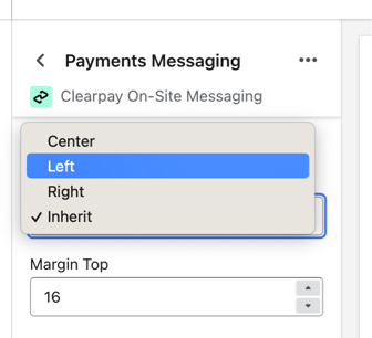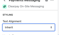 - Select the Payments Messaging - Clearpay On-Site Messaging block on the Product page.