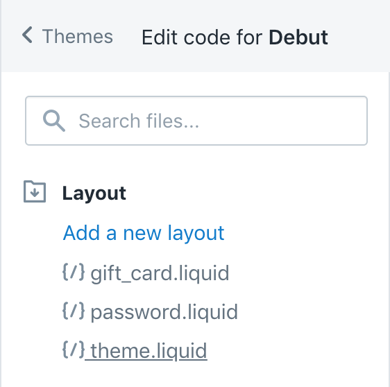 - Under the ‘Layout’ folder, click on ‘theme.liquid’.