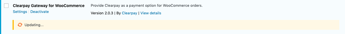 The ‘Clearpay Gateway for WooCommerce’ plugin will now commence the update process.